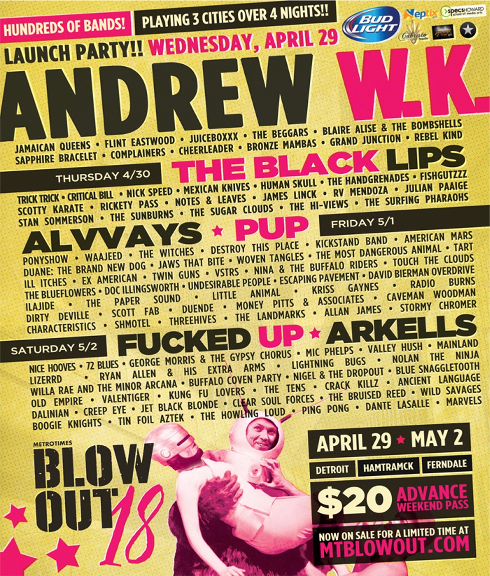 The Clouds have been invited to play BLOWOUT 18, Detroit's annual rock and roll showcase/festival. Over 4 nights, some 200 bands will play in Detroit and two other citites. The Sugar CLouds will take the stage on Thursday, April 30th at Whiskey in the Jar in Hamtramck, MI. We will take the stage at 9:00 p.m. and join Detroit bands Unlimited Head and Red Stone Souls.