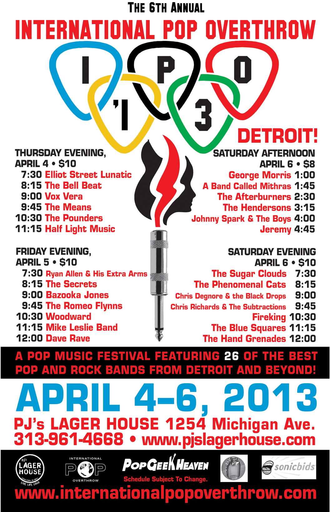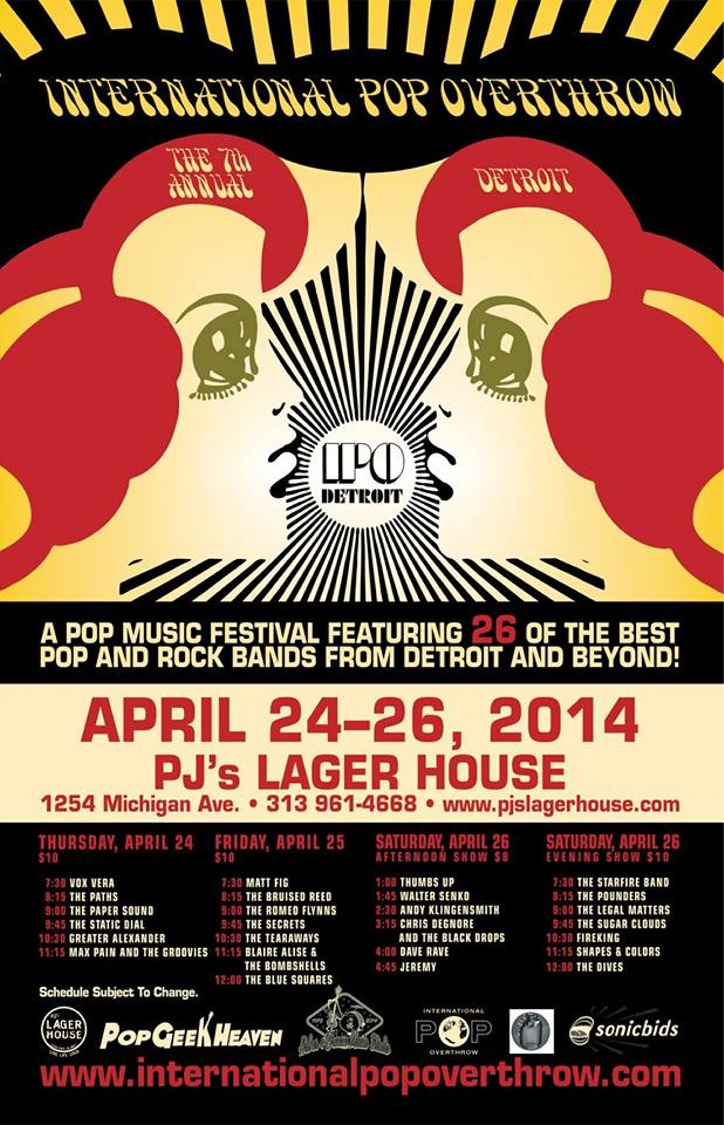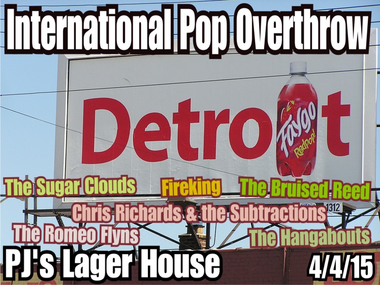 Our first show in a long while is happening on Saturday, April 6, 2013 at P.J.'s Lager House on Michigan Avenue in Detroit. We open the final night of the Detroit leg of the International Pop Overthrow festival, a traveling musical showcase that also has stops in Chicago, New York, Los Angeles, Portland, San Francisco, Nashville, London, Liverpool and more!