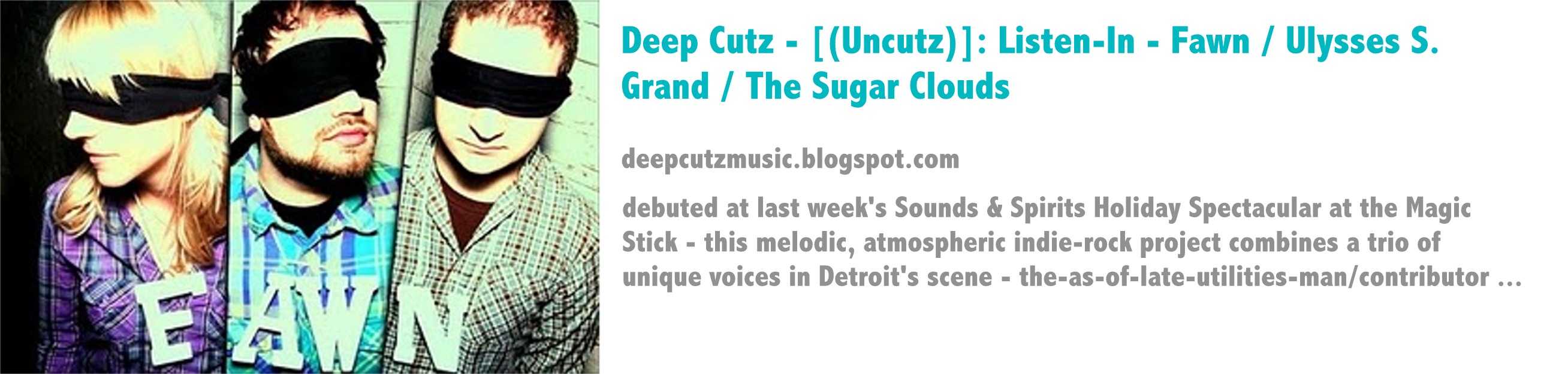 Music columnist and Detroit blogger, Jeff Milo had some nice things to say about the first songs we posted as The Sugar Clouds. Check it out on his Deep Cutz Blog.