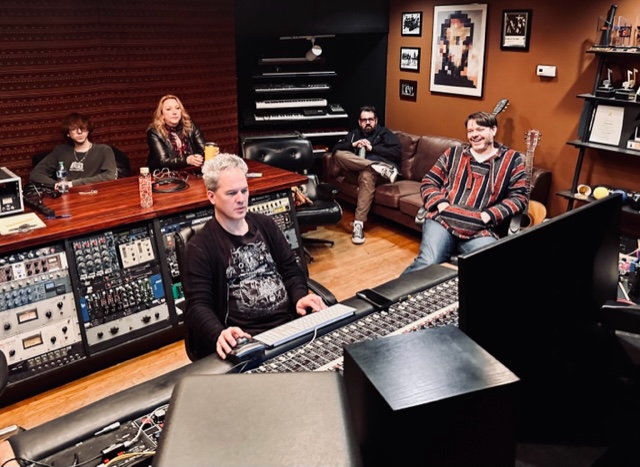 At Chris Koltay's High Bias Recordings in Detroit with (l. to r.) Todd Breadon, Eli Crews, Melissa B. Host, Greg Host, Jim Faulkner, Paul Einhaus, Chris Koltay