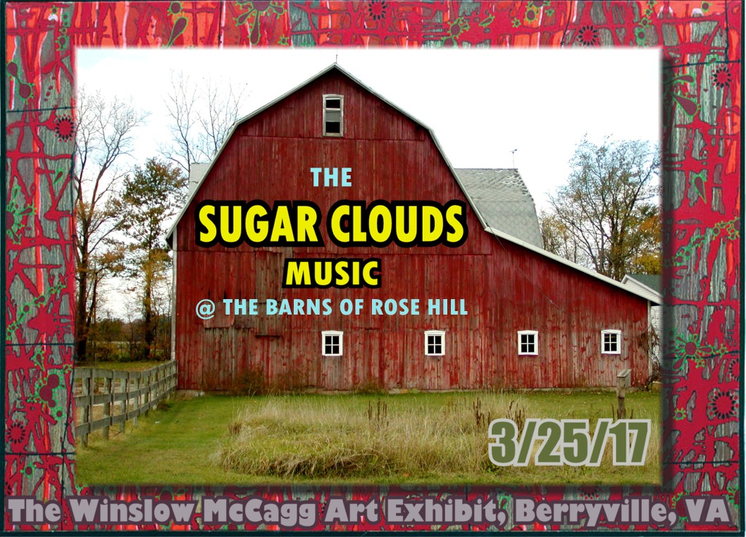 Millwood, Virgina artist, Winslow McCagg, whose work has graced the covers of both The Hosts debut record and The Sugar Clouds "Partners Don't Do That...", opens an art show on on March 25th, 2017 in The Barns of Rose Hill in Berryville, VA and has invited the Clouds to perform a concert at the opening. We will be playing upwards to two sets of music by The Hosts, The Sugar Clouds, both old and new, and perhaps a few covers for those with a low tolerance for original music. If you're in the Washington, DC area, please come out and have a look and a listen